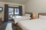 Spacious top floor, corner unit with vaulted ceilings & a gas fireplace. This unit sleeps six (6) with a King Bed in the Master and two (2) double beds in the second bedroom. There are three (3) bathrooms. Cable TV, wireless internet & maid service are included.