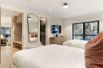 Riva Ridge Condos occupy arguably the best location in Vail Village. Only a two minutes’ walk to the center of the village yet serenely quiet, nestled around Bishop Park. A sought-after residential neighborhood and a wonderful place to hang your hat for a few nights. Next-door at the Willows is a large 22-person outdoor rock hot tub for Riva Ridge Guests to enjoy, including a changing room. Underground parking is complimentary at Riva Ridge for 1 vehicle per unit.