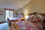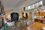 A spacious four-bedroom unit that works really-well for a large family group. The units sleep up to ten (maximum eight adults) with a King Bed in the Master, two (2) Queen Beds in the second bedroom, a Queen Bed in the first loft bedroom and a Queen Bed in the second loft bedroom. Queen sleeper sofa in the living room. Four & one-half bathrooms. Cable TV, wireless internet & maid service are included.
