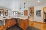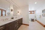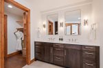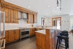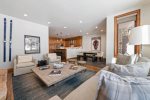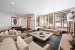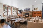 This Platinum, ski-in/ski-out, two-level mountain retreat offers a family room with a wood burning fireplace and wall-to-wall windows, a gourmet kitchen with superior stainless-steel appliances and granite countertops, plus a dining area for eight.