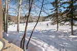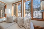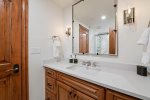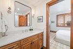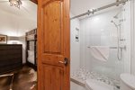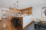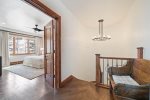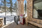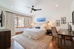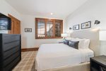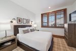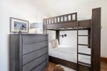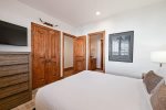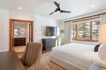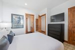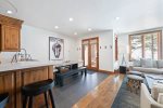 Additional features include three guest suites (primary has a king size bed, 46” TV and soaker tub, secondary has a queen size bed, third suite queen bed), hardwood flooring, a desk/workspace, laundry closet, and parking for one vehicle. This unit also offers a den with full bunks. This residence does not have air conditioning. Guests will appreciate unobstructed ski and gondola views from the patio, as well as the convenience of being able to step onto the slopes. An outdoor pool and hot tubs are also available.
