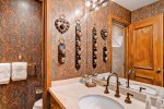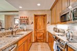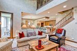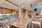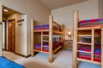 This Platinum, top floor, SKI IN/SKI OUT, on-mountain residence offers a wood burning fireplace and sleeper sofa in the great room, a chef’s kitchen, three guest suites, each with an attached bathroom: one with a king bed, one with a queen bed and a bunk room with two sets of twin-over-twin beds and a queen bed.
