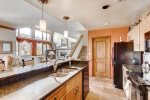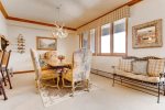 Elegant designer touches fill the great room, from the comfortable living room to the spacious dining room and colorful kitchen. The vaulted ceilings give the space an open, light feeling.