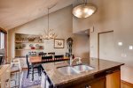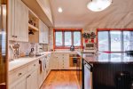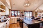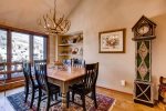 The home has comfortable mountain-style décor throughout, with thoughtful touches and all the comforts of home. The main level living room and the spacious patio have wonderful views of the mountain; you can even wave to the kids skiing down the Haymeadow run at the end of the day. The warm kitchen and dining room invite you to linger over that second cup of coffee before you head out to the lift in the morning.