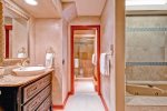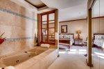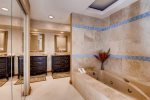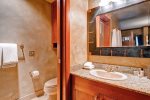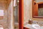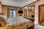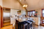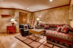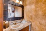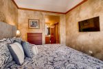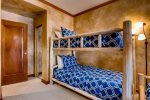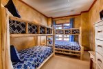 On the upper level you will find the elegantly appointed Master Suite. It features a King-sized bed and adjoining remodeled bathroom with separate shower and jetted soaking tub. The remaining bedrooms are downstairs on the entry level, where a secondary living room with large flat screen TV is a great spot for the kids to hang out. A King-sized bed and en suite bathroom grace the second bedroom. The bunkroom has a twin bunk bed as well as a twin over queen bunk, with an updated bathroom in the hall.