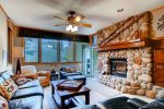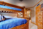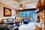 This mountain-elegant, ski-in, ski-out third floor retreat offers a family room with wood burning fireplace, a full kitchen, dual master suites, twin-over-queen bunk bed plus a twin trundle bed in the third bedroom, custom lighting, ceiling fans, washer/dryer, access to a ski locker with boot heater and parking for one vehicle.