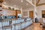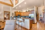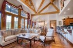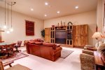 The open floor plan of Quartermoon 1258 includes large windows and vaulted ceilings that provide incredible views of the Bachelor Gulch ski slopes and all the way to the Gore Range in the east. The media and game room is the perfect place to relax with the whole family after a day of skiing.