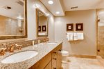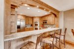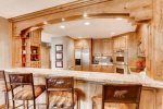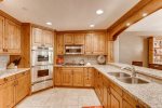 The spacious kitchen, with gorgeous custom cabinetry, is equipped with everything you will need to prepare a feast after a day on the slopes.