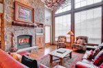 Spectacular does not even begin to describe this fourth floor, three-bedroom, three-and-a-half-bath residence. At Oxford Court #406, the towering stone fireplace anchors the living room, featuring beautiful hewn wood floors, vaulted ceilings, a striking antler chandelier and cathedral windows to take in the view of Beaver Creek.