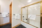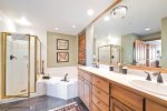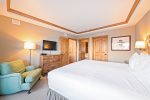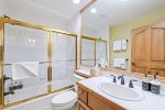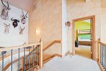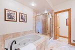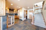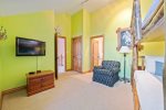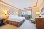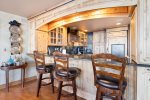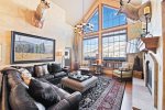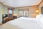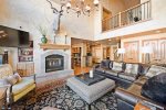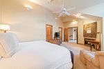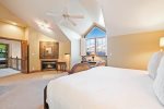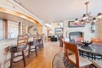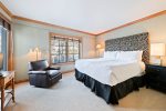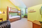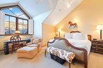 This SKI IN/SKI OUT, 4th/top floor, two-level, Platinum residence offers a gas fireplace, cathedral windows and vaulted ceilings in the great room, a chef’s kitchen, four guest suites, each with an attached bathroom, two with a king size bed (one with a gas fireplace), the third with a queen size bed, the fourth is perfect for kids with twin-over-twin bunk beds and a twin trundle bed too.