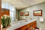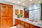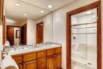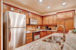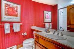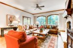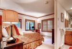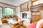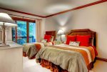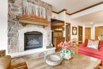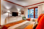 This Mountain Elegant, SKI IN/SKI OUT, 2nd Floor, Platinum Residence offers a gas fireplace and floor-to-ceiling windows in the great room, a chef’s kitchen with upgraded appliances, three guest suites, each with an attached bathroom, one with a king size bed, the second with a queen and twin bed, the third with a twin-over-queen bunk bed.
