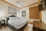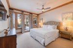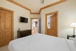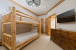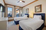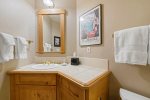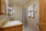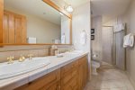At Villa Montane #1134, the natural wood accents give the great room an open, airy cabin feel, with vaulted ceilings, gas fireplace and plenty of natural light. The upgraded, fully stocked kitchen features granite countertop with enough space to whip up a big breakfast before a day on the slopes. The master, furnished with a King sized bed, has an upgraded bathroom with jetted tub and separate shower, TV and a patio. The second bedroom has two twin sized beds that can be pushed together if needed to make a King Bed, shares the patio with the master and utilizes the bathroom across the hall. The third bedroom has two (2) sets of twin sized bunk beds with a bathroom in the hall. The fourth bedroom has a Full-sized bed with an en suite bathroom.