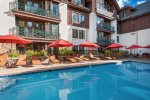 The European-style Villa Montane townhomes are located in the heart of Beaver Creek. Guests are just steps from shopping and dining, as well as the Performing Arts Center and ice rink. Ski-ways provide access to and from the Elkhorn Lift and slopes. Completed in 1998, the spacious townhomes showcase vaulted ceilings, rock fireplaces, and custom kitchens. Outside the on-site pool and hot tubs entice skiers after a day on the slopes.