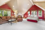 The thoughtful floor plan encompasses a main floor master, living room with vaulted ceilings, two (2) Guest Rooms on the upper level, and suite above the 2-car garage. Enjoy unobstructed mountain views from your living room, kitchen, deck and patio.