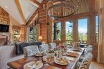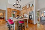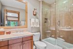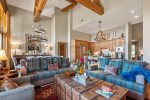 This expansive, luxurious SKI IN/SKI OUT residence features a gas fireplace and oversized Private Hot Tub for 10 people, a chef’s kitchen that is fully outfitted and complete with gas range, 2 ovens, a spacious den/game room with surround sound, gaming hook up, and DVD player, dual suites with king beds, double queen bed room, and two sets of twin-over-full beds in the bunk room, exceptionally comfortable pullout queen bed in den/game room with all sleeping areas equipped with ensuite bathrooms.