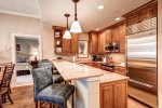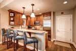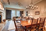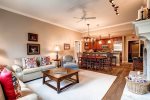The well-equipped open kitchen flows right into the dining area and living room, the perfect spot for après ski drinks and stories in front of the fire with partial views of the Strawberry Park slopes.