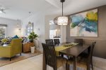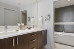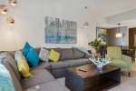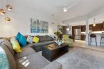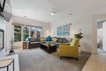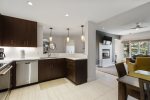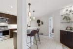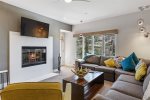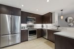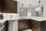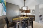This contemporary-chic, second floor, SKI IN/SKI OUT, 2 Bedroom/2 Bath Condo sleeps eight, offering a family room with a wood-burning fireplace and sleeper sofa, a chef’s kitchen with upgraded, stainless steel appliances, and a dining area.