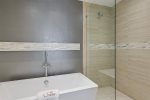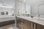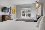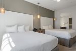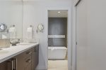 Additional features include two guest suites, each with an attached, lavish bathroom (one with a king size bed, the second with two (2) queen beds), custom tile, flooring and lighting, a private deck, washer/dryer and garage parking.