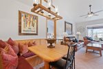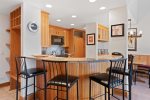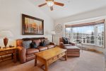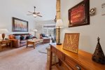 This top floor, SKI IN/SKI OUT, 2 Bedroom/2 Bath Condo offers a family room with vaulted ceilings, a wood-burning fireplace and sleeper sofa, a complete kitchen with granite countertops, as well as a cozy dining niche.