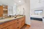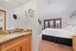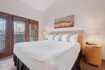 Additional features include two guest suites, each with a king size bed and attached, upgraded bathroom, a private deck, washer/dryer, air conditioning, and garage parking.