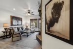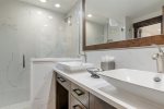 Additional features include two guest suites, each with a luxe, spa-like bathroom (the first with a king size bed, the second with two queens and mini refrigerator), central air conditioning, superior flooring and cabinetry, a private deck, washer/dryer and garage parking. This residence can be converted into a one-bedroom and studio.