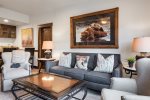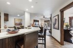 Among the most discerning residences at The Charter, 3rd floor, SKI IN/SKI OUT, 2 Bedroom/2 bath Condo offers a family room with a wood-burning fireplace, a gourmet kitchen with quartz countertops and dining area.