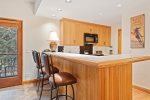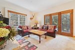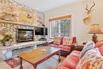 This inviting, SKI IN/SKI OUT, 1 Bedroom/1.75 Bath Condo offers a family room with a wood-burning fireplace and sleeper sofa, a complete kitchen, dining niche, and guest suite with a king size bed and attached bathroom.