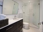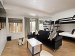 This beautiful Chalet has 5 bedrooms and 7 bathrooms. The master bedroom has a king bed with a wall-mounted TV and private bathroom that features a large soaking tub, double vanity and separate shower. The next three bedrooms have queen-size beds and each has their own private bathroom with spacious showers. The fifth bedroom has 2 twin-over-full bunk beds and includes a small kitchenette with sink, refrigerator and small stove/oven, large wall-mounted TV and a couch...perfect as an in-law suite or for older kids!