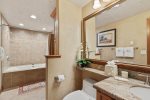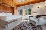 Additional features include three guest suites, each with a king size bed and attached bathroom (one has a fireplace, wet bar, mini refrigerator and coffee maker), a fourth bedroom with a king size bed and hallway bathroom, washer/dryer, a private deck and garage parking. This residence can be converted into a three-bedroom and studio.