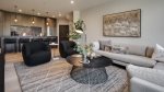 Clean lines and an open floor plan define the single level living in this contemporary space, with glamorous and thoughtful details that make this home entirely modern. Plenty of natural light from big windows opens into a large great room, complete with a wood-burning fireplace and stylish furnishings, the perfect place to catch up with friends and family. Access the patio for BBQ grilling and outdoor dining in summer, with beautiful treed and ski area views.