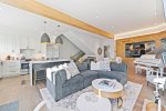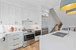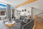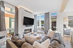 This new, multi-level, Platinum Rated residence, finished in sophisticated neutrals, is a short walk from The Westin Riverfront Express Gondola and offers a great room with a gas fireplace, floor-to-ceiling windows and an epicurean kitchen with premium appliances, including a gas range and wine refrigerator; as well as a dining area for six.