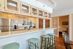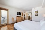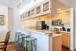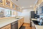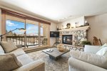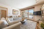 This fourth floor, SKI IN/SKI OUT retreat is steps from the Elkhorn Lift and offers a family room with a gas fireplace, a full kitchen with stainless steel appliances, plus a dining table for four.