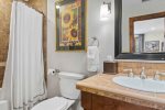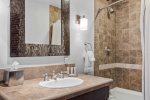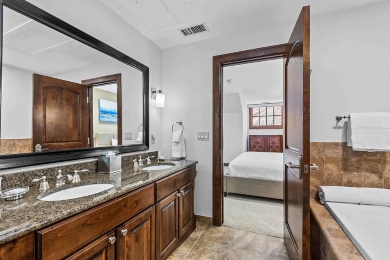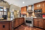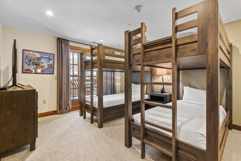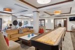 This divine, top floor, two-level Platinum residence offers vaulted ceilings, a gas fireplace and surround sound in the great room, full kitchen with gas range and four guest suites, each with an attached bathroom, two with king size beds, the third with two sets of twin-over-twin bunk beds, the fourth with two twin beds that can be made into a king.