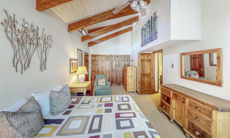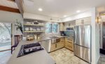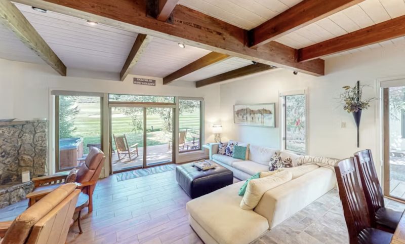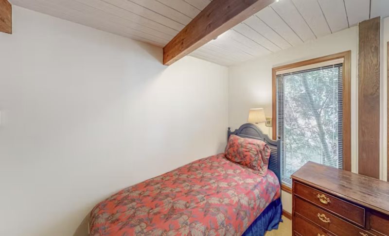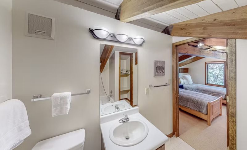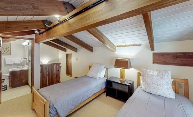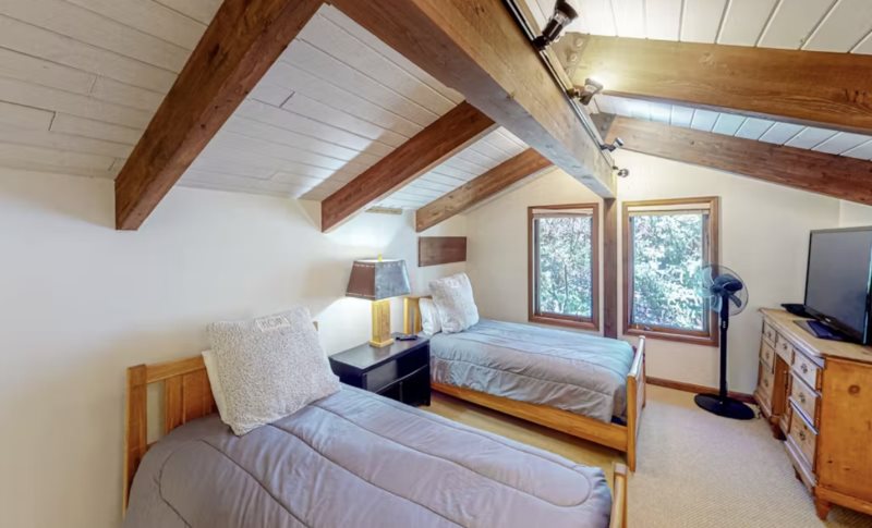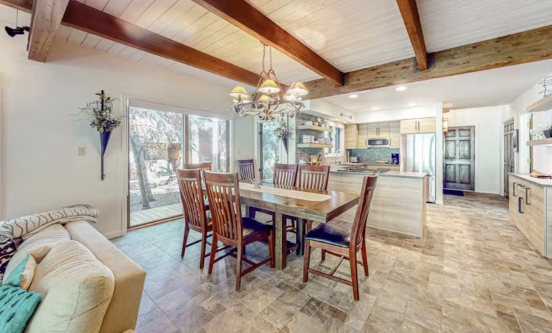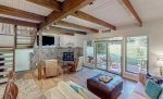 Step through the front door and find yourself in a warm and very inviting, three-story vacation rental with comfortable living spaces, open beam ceilings, and vintage antiques. Crack open your cookbooks and whip up family-favorite meals in the well-equipped, full kitchen, and then dine together at the adjacent table for eight. Relax in the sunlit living area where you can sink into the plush sectional sofa, get a fire going in the fireplace on chilly evenings, and channel surf on the large TV.