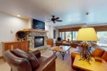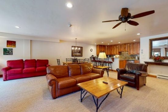 This ski-in/ski-out home located at the base of Vail Mountain is sure to put a smile on everyone's face, no matter what time of year you decide to visit! The air-conditioned interior is decorated with lots of homey furniture and decor, a big full kitchen with lots of counter space, cookware, and stainless-steel appliances, and plenty of room for everyone to move around, all kept comfortable with ceiling fans in the bedrooms and the living area.