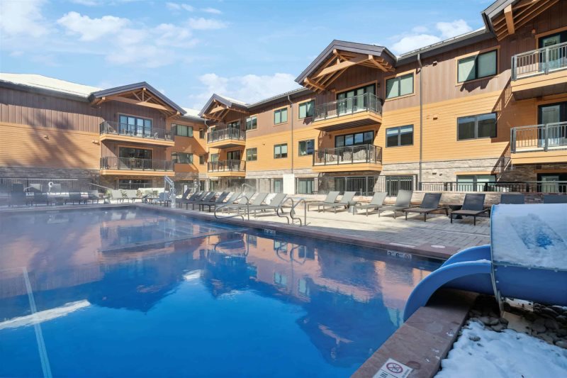 These spectacular residences, located along Highway 6 and the Eagle River, are a stunning new addition to the Avon community. Offering spacious homes with 2 to 5 bedrooms, this property is conveniently situated near the entrance to Beaver Creek Resort. Amenities include The Springs Outdoor Oasis Pool and the Pioneer Plunge Waterslide, featuring Avon’s largest hot tub. The property also boasts a 3,600-square-foot Technogym Fitness Center and Yoga Studio, a Golf & Sports Simulator Suite, a Guest Ski/Boot Locker Room, a grab-and-go market, and community e-bikes. Several relaxing common areas are available, such as the Wanderlust Lounge, Fika Coffee Bar, and Hygge Lounge. Each residence features luxe interiors, elegant bathrooms, a stunning kitchen, and an open floor plan, with additional perks like an in-unit washer and dryer, heated parking, and mountain shuttles to Vail and Beaver Creek. Townhome guests also have exclusive access to a private 15-person hot tub.