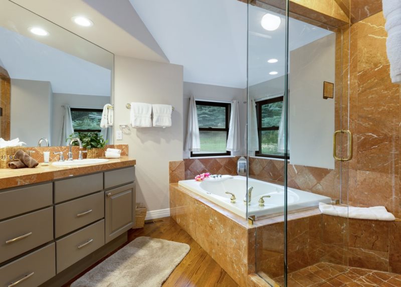 Guest Suite #1 features a King bed with a shared en-suite jack-and-jill bathroom