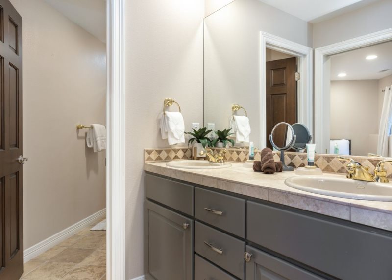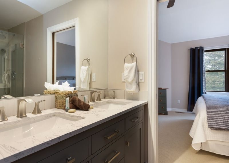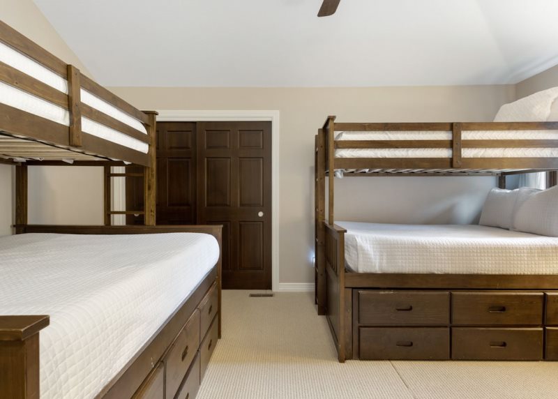 Guest Suite #2 features two (2) Twin over Queen bunk beds with a shared en-suite jack-and-jill bathroom