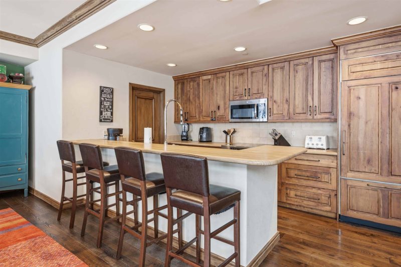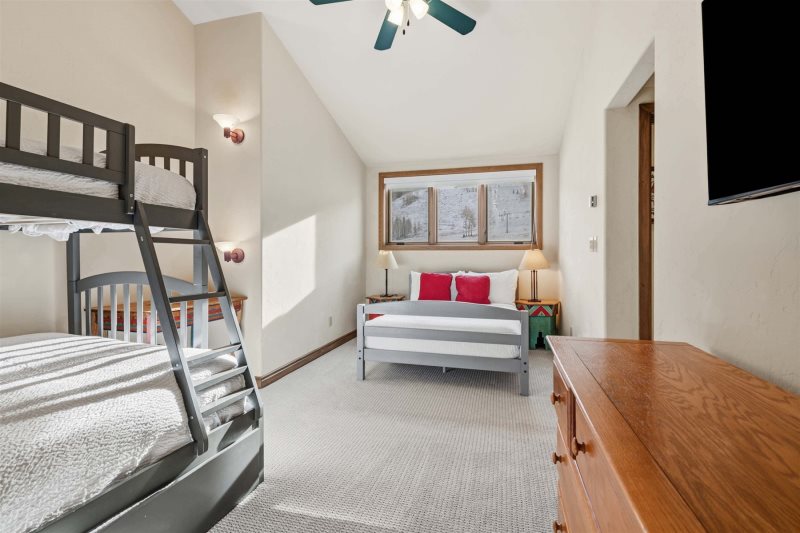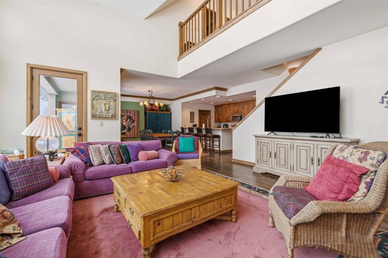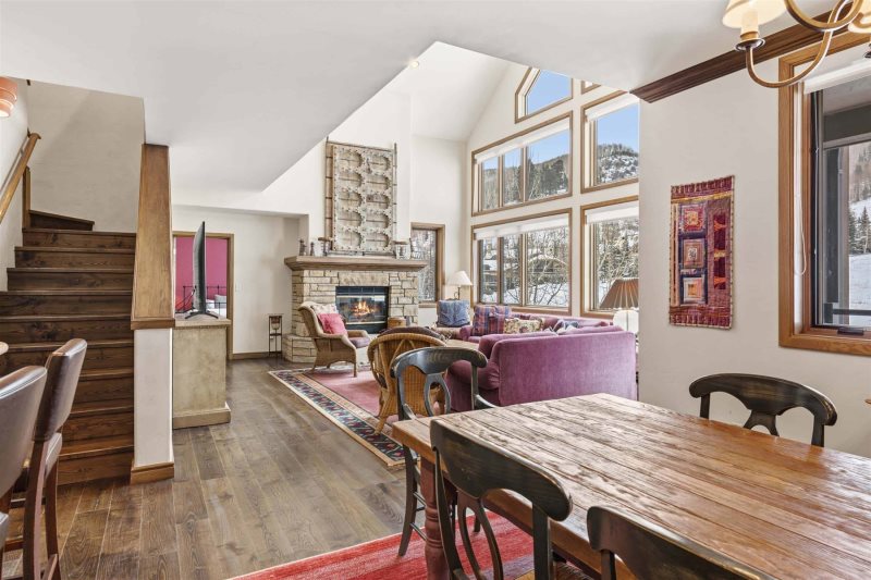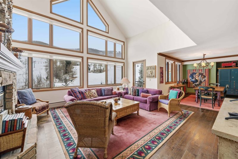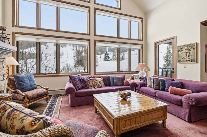 Guests can ski in and out from the patios of several of these residences; the rest utilize the convenient first floor ski locker room, with access right onto the Haymeadow Run. Relax in the property’s great room, complete with a stone fireplace and a deck overlooking the slopes. It’s hard to beat Slopeside for the views, ski access or comfort.
